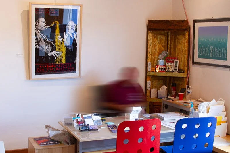 2018: This year I was shocked by being reminded of it being 50 years since the murder of Dr Martin Luther King. Earlier that same year I had been revisiting my love of African masks and sculpture, the art of Jean Michel Basquiat, and experimenting with layering of masks and portraits of contemporary African people. Out of this came the idea for a series of prints, ‘Displacement and Defacement’ – reflecting the long running & oppresive displacement & defacement of countries and peoples of our world. I participated in the 2018 ‘Taos and Beyond: Studio Tour at Taos Town Hall’, and the High Road Artisan studio tour